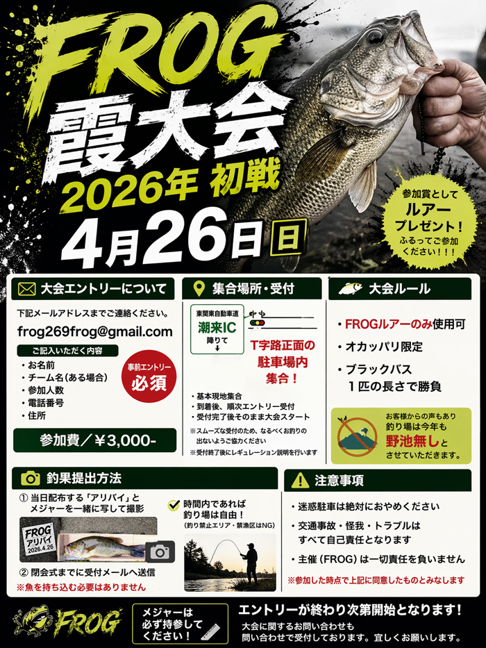 ルアーはFROGルアーであれば何を使っても大丈夫です